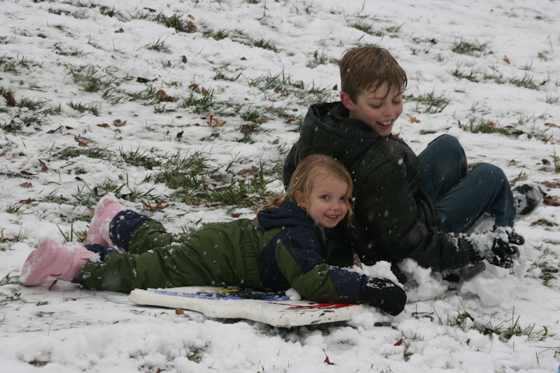 The next-door-neighbors have the perfect sledding hill- steep, with an open field at the bottom. Not a tree anywhere.
